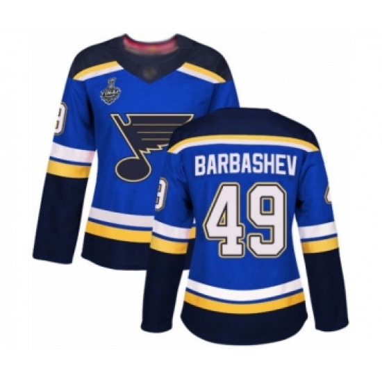 >Women's St. Louis Blues #49 Ivan Barbashev Authentic Royal Blue Home 2019 Stanley Cup Final Bound Hockey Jersey