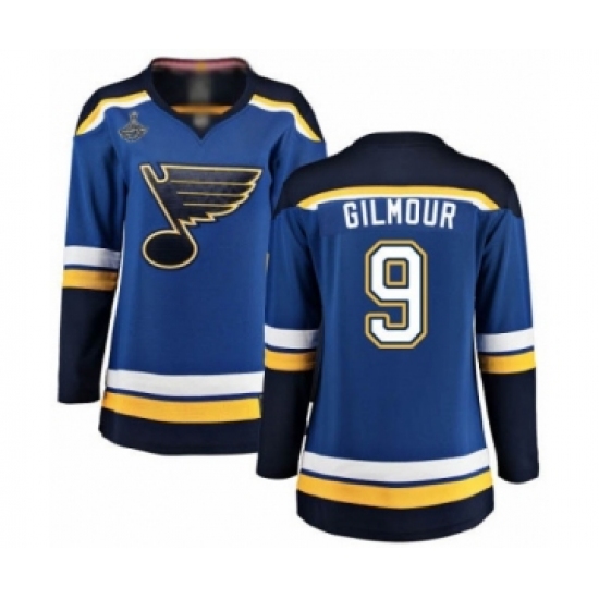 >Women's St. Louis Blues #9 Doug Gilmour Fanatics Branded Royal Blue Home Breakaway 2019 Stanley Cup Champions Hockey Jersey