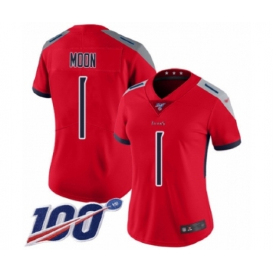 >Women's Tennessee Titans #1 Warren Moon Limited Red Inverted Legend 100th Season Football Jersey