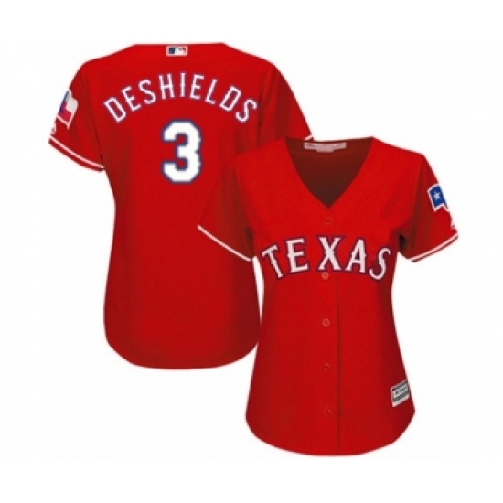 Women's Texas Rangers #3 Delino DeShields Jr. Authentic Red Alternate Cool Base Baseball Player Jersey
