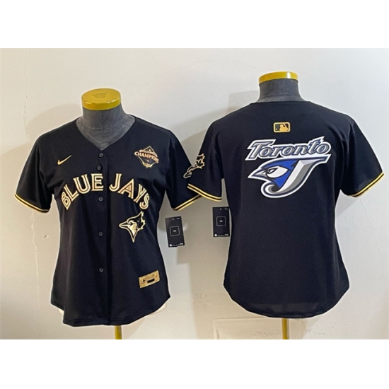 Women's Toronto Blue Jays Team Big Logo Black Gold 2025 American League Champions Limited Stitched Baseball Jersey(Run Small)