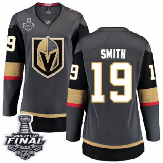 >Women's Vegas Golden Knights #19 Reilly Smith Authentic Black Home Fanatics Branded Breakaway 2018 Stanley Cup Final NHL Jersey
