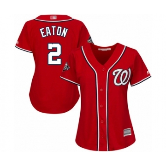 Women's Washington Nationals #2 Adam Eaton Authentic Red Alternate 1 Cool Base 2019 World Series Bound Baseball Jersey