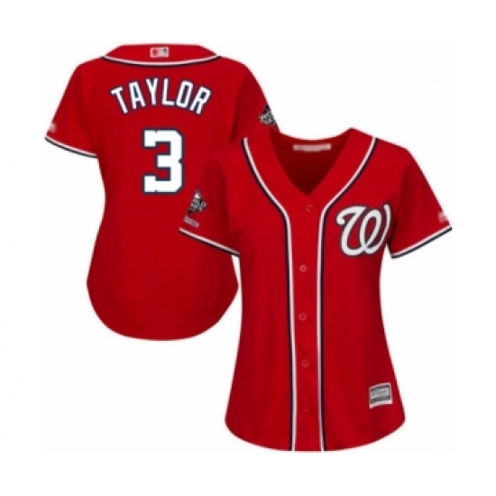 Women's Washington Nationals #3 Michael Taylor Authentic Red Alternate 1 Cool Base 2019 World Series Champions Baseball Jersey
