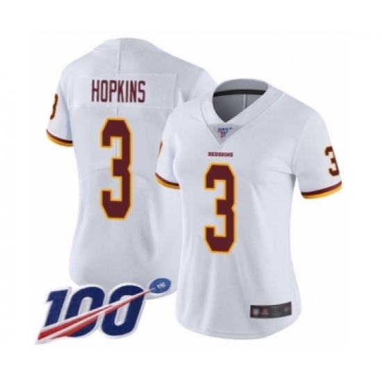 Women's Washington Redskins #3 Dustin Hopkins White Vapor Untouchable Limited Player 100th Season Football Jersey