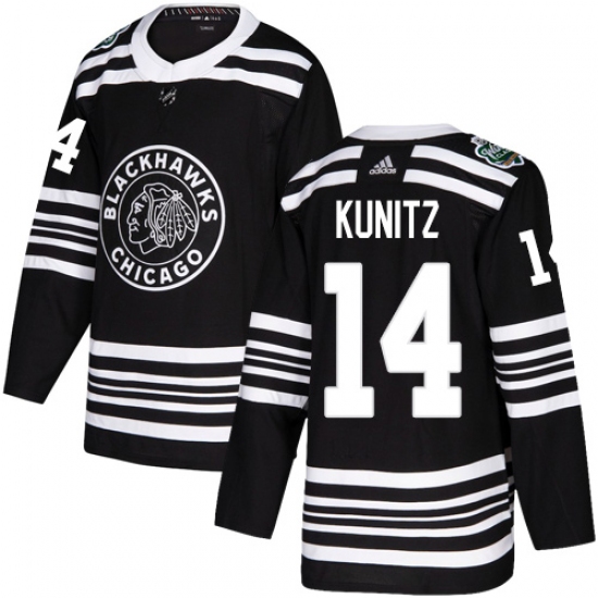 >Youth Adidas Chicago Blackhawks #14 Chris Kunitz Authentic Black 2019 Winter Classic NHL Jersey