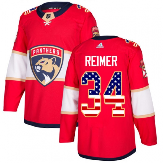 Home>NHL>Florida Panthers>James Reimer>Youth Adidas Florida Panthers #34 James Reimer Authentic Red USA Flag Fashion NHL Jersey