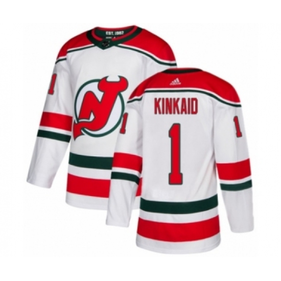 Men's Adidas New Jersey Devils #1 Keith Kinkaid Premier White Alternate NHL Jersey