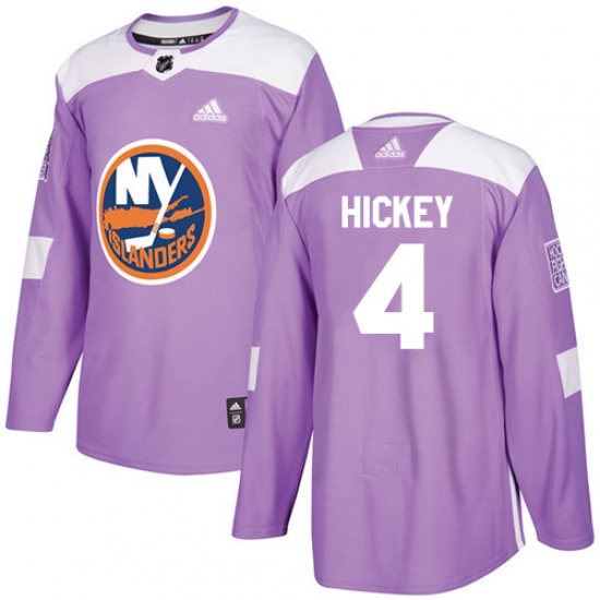 >Youth Adidas New York Islanders #4 Thomas Hickey Authentic Purple Fights Cancer Practice NHL Jersey