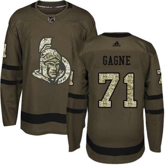 Home>NHL>Ottawa Senators>Gabriel Gagne>Youth Adidas Ottawa Senators #71 Gabriel Gagne Premier Green Salute to Service NHL Jersey