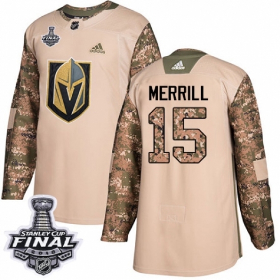 Women's Adidas Vegas Golden Knights #15 Jon Merrill Authentic Camo Veterans Day Practice 2018 Stanley Cup Final NHL Jersey
