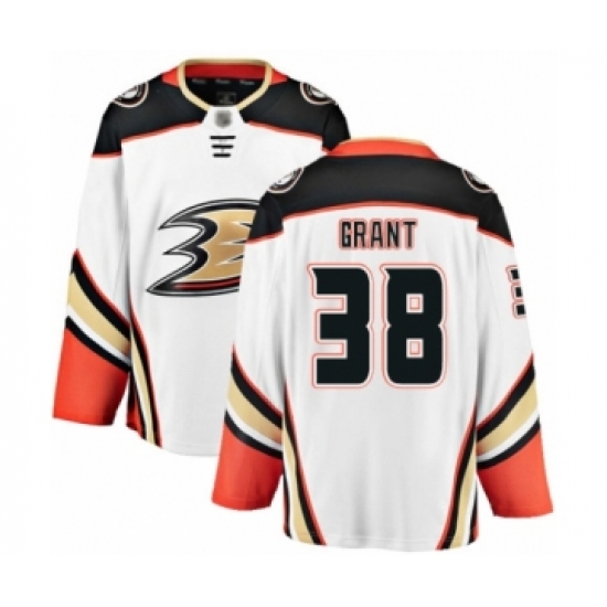 >Youth Anaheim Ducks #38 Derek Grant Authentic White Away Fanatics Branded Breakaway Hockey Jersey