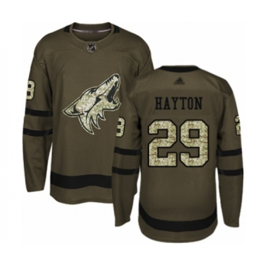 Women's Arizona Coyotes #29 Barrett Hayton Authentic Green Salute to Service Hockey Jersey