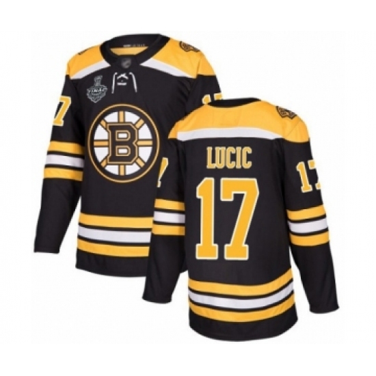 >Youth Boston Bruins #17 Milan Lucic Authentic Black Home 2019 Stanley Cup Final Bound Hockey Jersey
