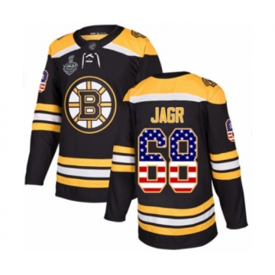 >Youth Boston Bruins #68 Jaromir Jagr Authentic Black USA Flag Fashion 2019 Stanley Cup Final Bound Hockey Jersey