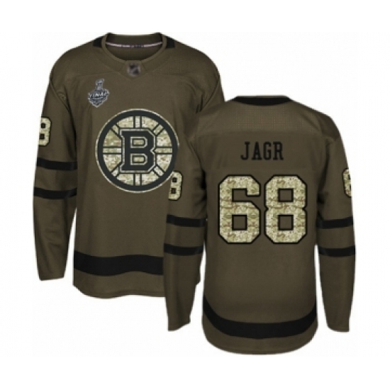 >Youth Boston Bruins #68 Jaromir Jagr Authentic Green Salute to Service 2019 Stanley Cup Final Bound Hockey Jersey