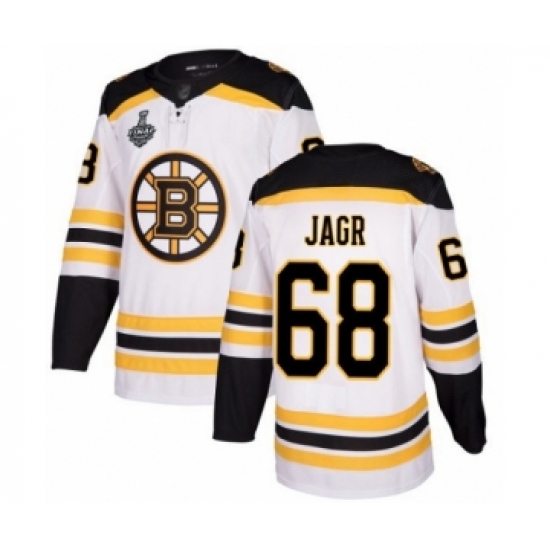 >Youth Boston Bruins #68 Jaromir Jagr Authentic White Away 2019 Stanley Cup Final Bound Hockey Jersey