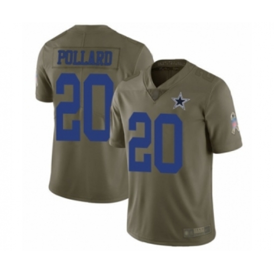 >Youth Dallas Cowboys #20 Tony Pollard Limited Olive 2017 Salute to Service Football Jersey
