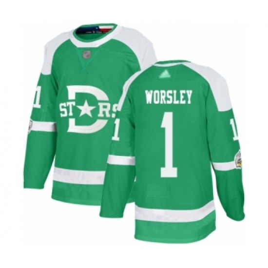 >Youth Dallas Stars #1 Gump Worsley Authentic Green 2020 Winter Classic Hockey Jersey