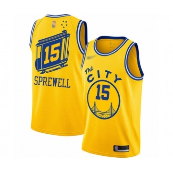 >Youth Golden State Warriors #15 Latrell Sprewell Swingman Gold Hardwood Classics Basketball Jersey - The City Classic Edition