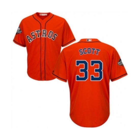 >Youth Houston Astros #33 Mike Scott Authentic Orange Alternate Cool Base 2019 World Series Bound Baseball Jersey
