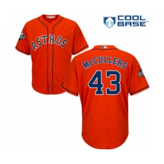 Youth Houston Astros #43 Lance McCullers Authentic Orange Alternate Cool Base 2019 World Series Bound Baseball Jersey