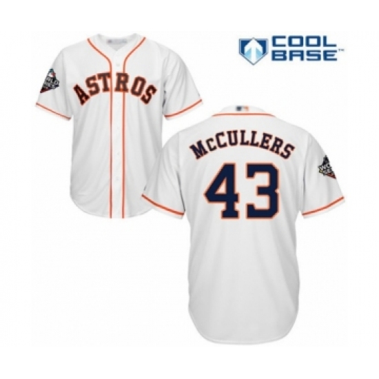 Youth Houston Astros #43 Lance McCullers Authentic White Home Cool Base 2019 World Series Bound Baseball Jersey