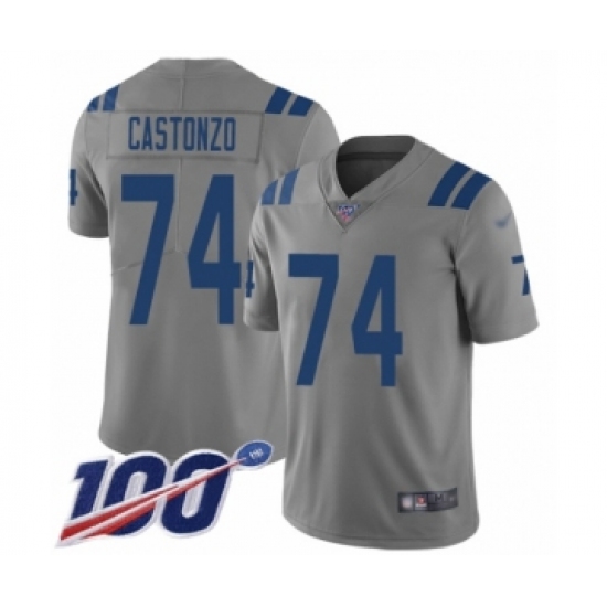 >Youth Indianapolis Colts #74 Anthony Castonzo Limited Gray Inverted Legend 100th Season Football Jersey