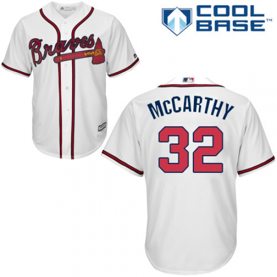 Home>MLB>Atlanta Braves>Brandon McCarthy>Youth Majestic Atlanta Braves #32 Brandon McCarthy Replica White Home Cool Base MLB Jersey
