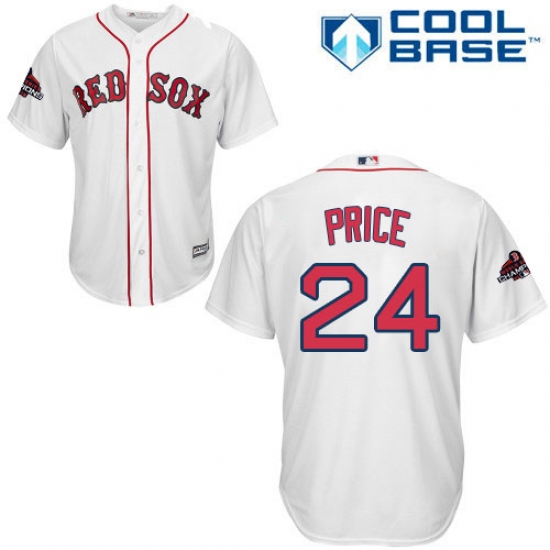 >Youth Majestic Boston Red Sox #24 David Price Authentic White Home Cool Base 2018 World Series Champions MLB Jersey