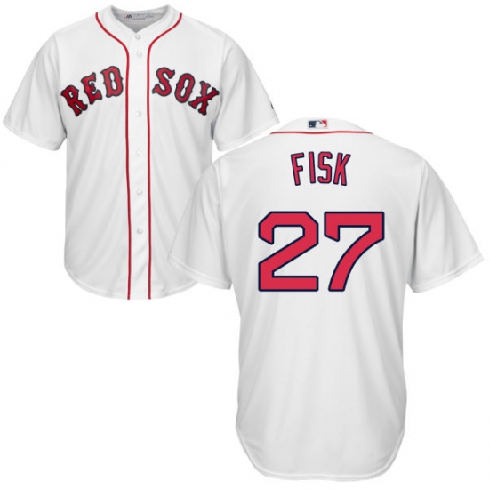 Home>MLB>Boston Red Sox>Carlton Fisk>Youth Majestic Boston Red Sox #27 Carlton Fisk Authentic White Home Cool Base MLB Jersey