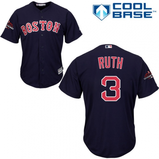 Youth Majestic Boston Red Sox #3 Babe Ruth Authentic Navy Blue Alternate Road Cool Base 2018 World Series Champions MLB Jersey