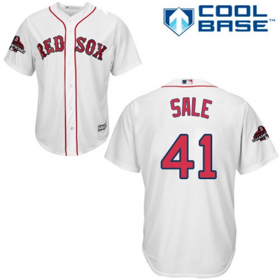 Youth Majestic Boston Red Sox #41 Chris Sale Authentic White Home Cool Base 2018 World Series Champions MLB Jersey