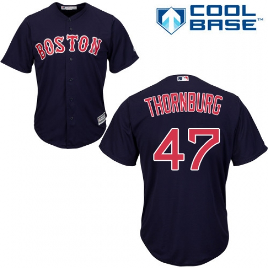 Home>MLB>Boston Red Sox>Tyler Thornburg>Youth Majestic Boston Red Sox #47 Tyler Thornburg Authentic Navy Blue Alternate Road Cool Base MLB Jersey