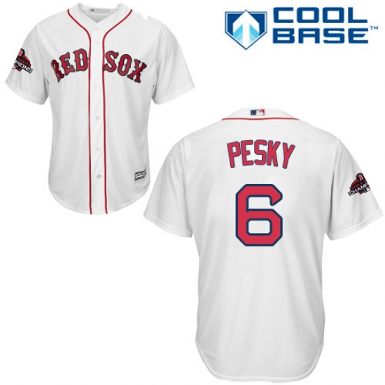 >Youth Majestic Boston Red Sox #6 Johnny Pesky Authentic White Home Cool Base 2018 World Series Champions MLB Jersey