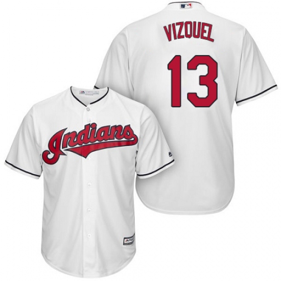 Youth Majestic Cleveland Indians #13 Omar Vizquel Replica White Home Cool Base MLB Jersey