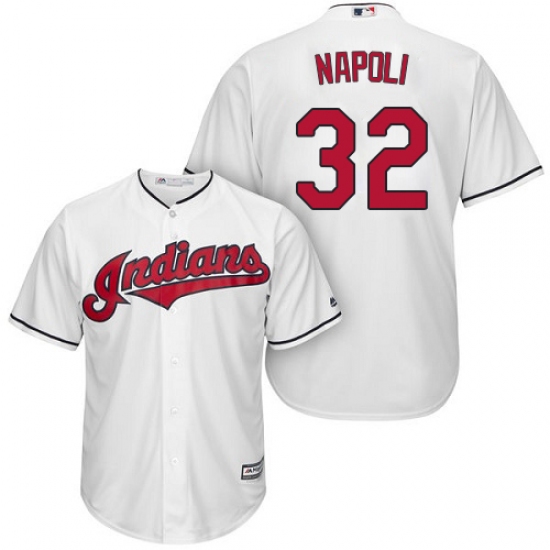 Home>MLB>Cleveland Indians>Mike Napoli>Youth Majestic Cleveland Indians #32 Mike Napoli Replica White Home Cool Base MLB Jersey