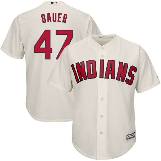 Home>MLB>Cleveland Indians>Trevor Bauer>Youth Majestic Cleveland Indians #47 Trevor Bauer Authentic Cream Alternate 2 Cool Base MLB Jersey
