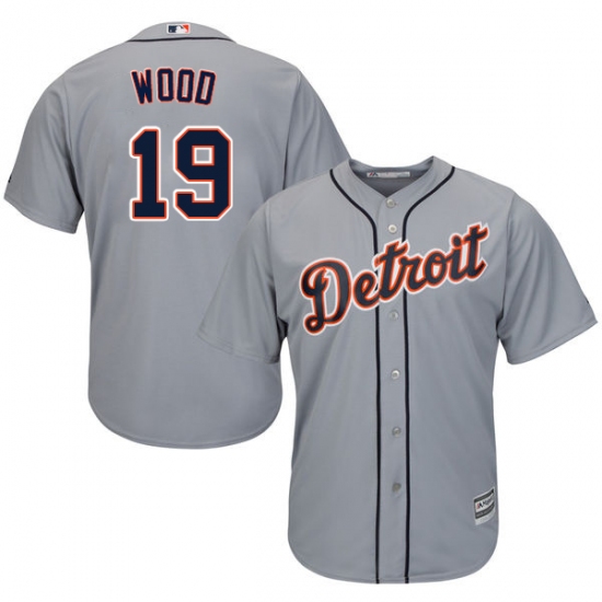 Home>MLB>Detroit Tigers>Travis Wood>Youth Majestic Detroit Tigers #19 Travis Wood Replica Grey Road Cool Base MLB Jersey
