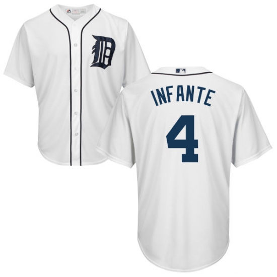 Home>MLB>Detroit Tigers>Omar Infante>Youth Majestic Detroit Tigers #4 Omar Infante Authentic White Home Cool Base MLB Jersey