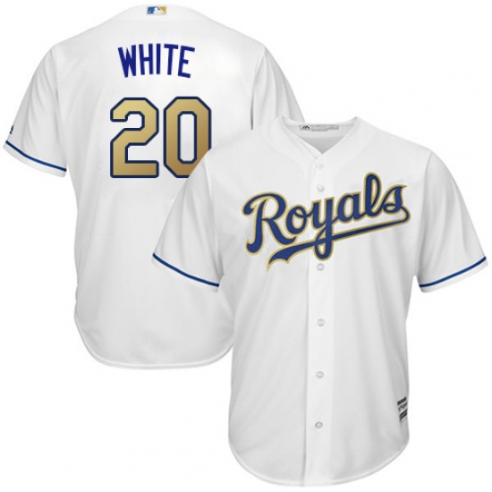 Home>MLB>Kansas City Royals>Frank White>Youth Majestic Kansas City Royals #20 Frank White Authentic White Home Cool Base MLB Jersey