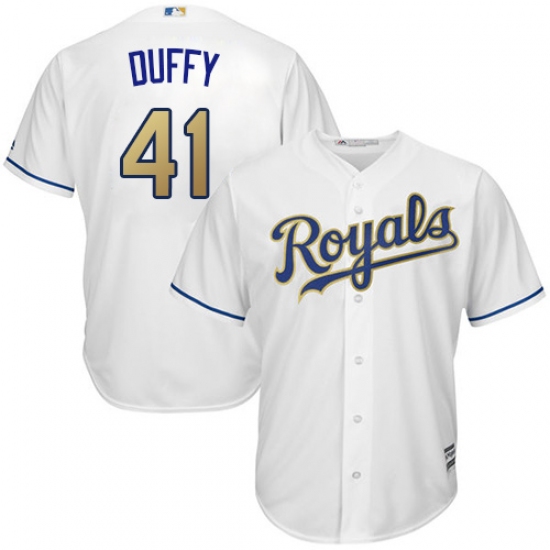 Home>MLB>Kansas City Royals>Danny Duffy>Youth Majestic Kansas City Royals #41 Danny Duffy Authentic White Home Cool Base MLB Jersey