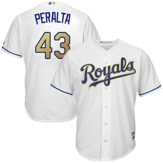 Home>MLB>Kansas City Royals>Wily Peralta>Youth Majestic Kansas City Royals #43 Wily Peralta Replica White Home Cool Base MLB Jersey