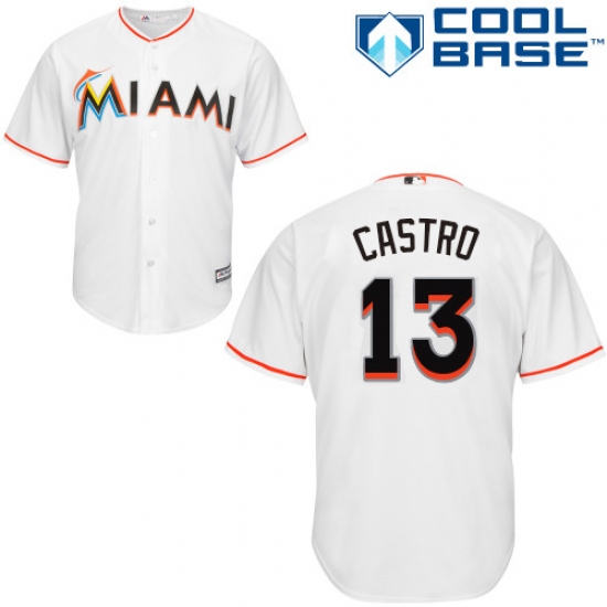 Home>MLB>Miami Marlins>Starlin Castro>Youth Majestic Miami Marlins #13 Starlin Castro Authentic White Home Cool Base MLB Jersey