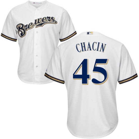 Home>MLB>Milwaukee Brewers>Jhoulys Chacin>Youth Majestic Milwaukee Brewers #45 Jhoulys Chacin Replica White Home Cool Base MLB Jersey