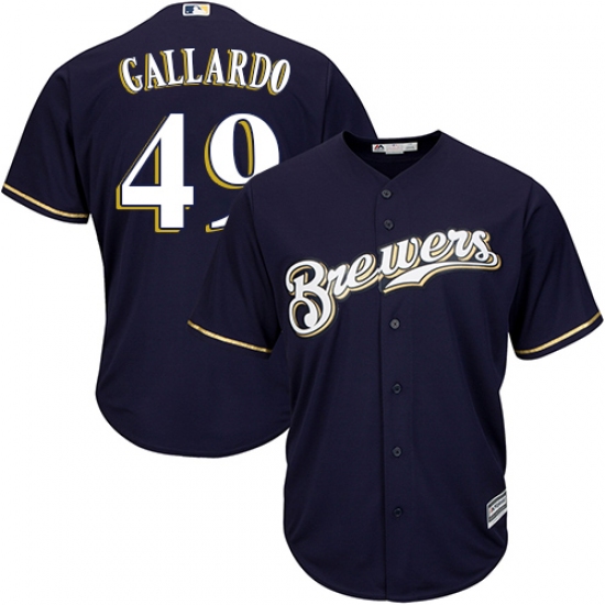 Home>MLB>Milwaukee Brewers>Yovani Gallardo>Youth Majestic Milwaukee Brewers #49 Yovani Gallardo Authentic Navy Blue Alternate Cool Base MLB Jersey