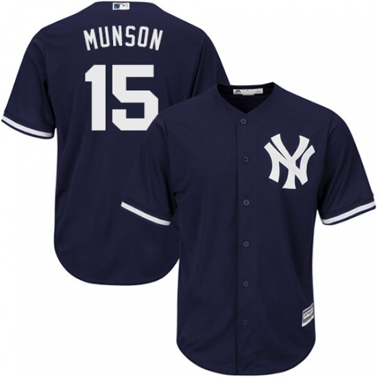 Home>MLB>New York Yankees>Thurman Munson>Youth Majestic New York Yankees #15 Thurman Munson Authentic Navy Blue Alternate MLB Jersey