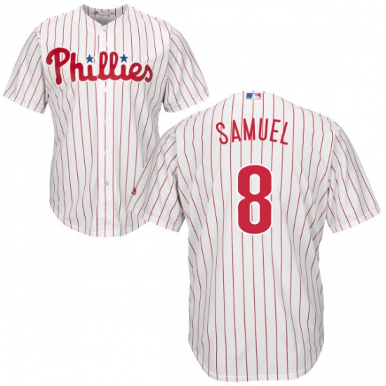Home>MLB>Philadelphia Phillies>Juan Samuel>Youth Majestic Philadelphia Phillies #8 Juan Samuel Authentic White/Red Strip Home Cool Base MLB Jersey