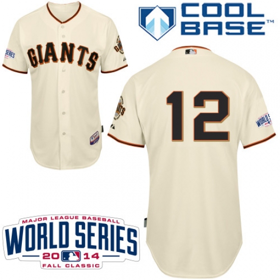 Youth Majestic San Francisco Giants #12 Joe Panik Authentic Cream Home Cool Base w/2014 World Series Patch MLB Jersey