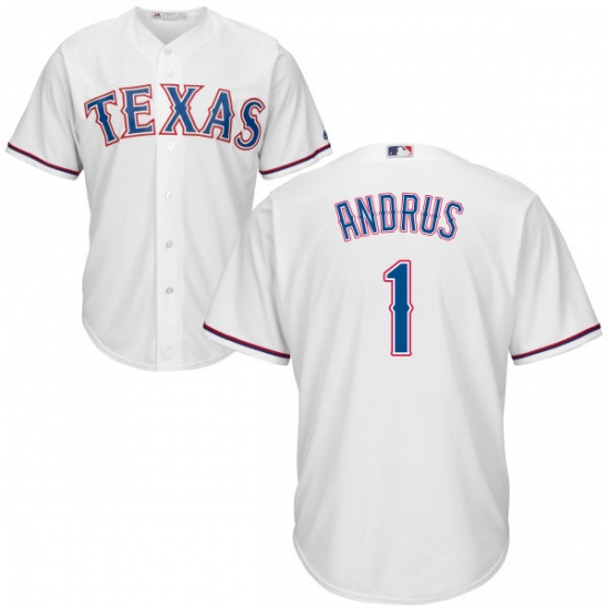 Youth Majestic Texas Rangers #1 Elvis Andrus Replica White Home Cool Base MLB Jersey